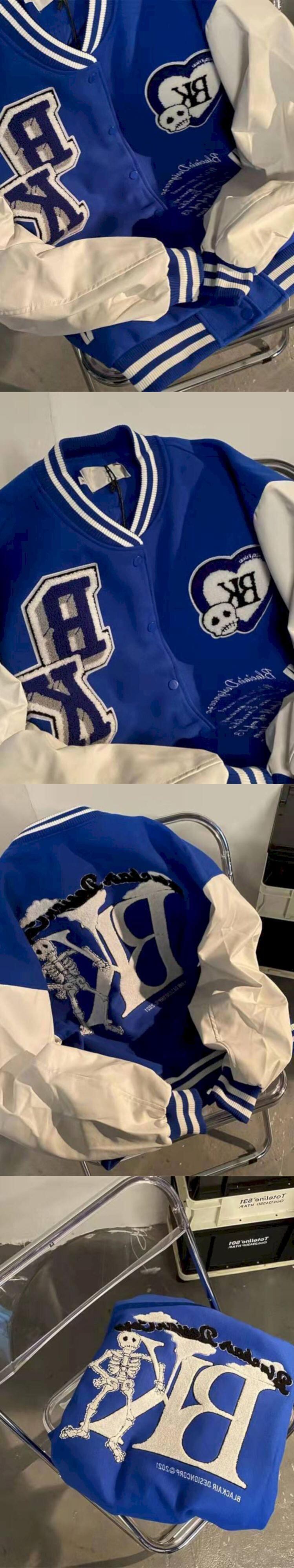 ベースボールジャケットレディースメンズアメリカンストリート刺繍ルーズヒップホップフロッキングステッチ長袖ボンバージャケット ロング レッド got99666326723