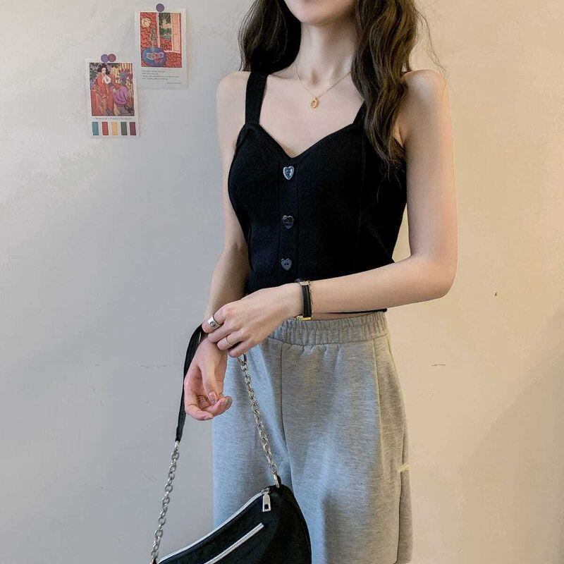 クロップトップ女性ニットベスト夏糸スリムフィット薄型スリングフレンチタンクトップでレトロトレンディ サマー 夏物 got36941327926
