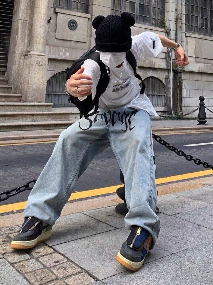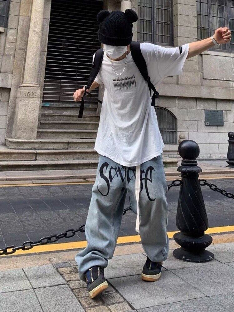 ストリートジーンズレディースメンズワイドレッグパンツストレートユニセックスボトムスストリートデニムズボンタクティカルパンツヒップホップジーンズ ワイドパンツ got34578481341