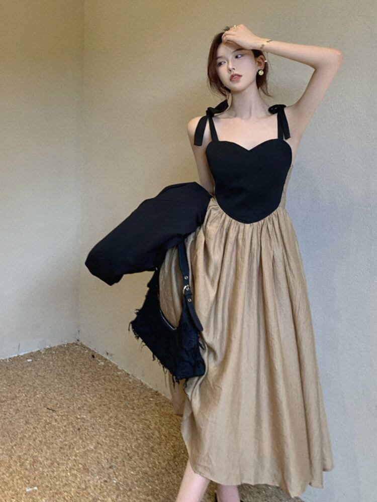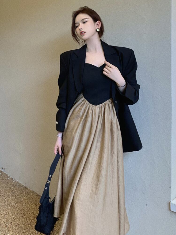 Gothiscyn オフィスレディスーツ ブラックジャケット + チューブトップドレス 2点セット セクシーシックなスプライスドレス Vネック ミッドカーフ 春 スプリング 春物 会社 学校 通勤や通学にも got73639098520