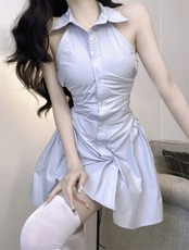 Gothiscyn セクシー ハンギングネック ネックライン ノースリーブ ドレス 夏 ウエスト スリム オフショルダー セクシー スカート マキシドレス オフィスレディ サマー 夏物 会社 学校 通勤や通学にも got22615885448