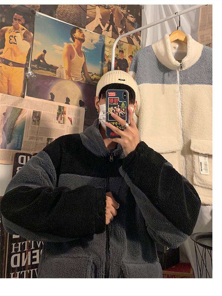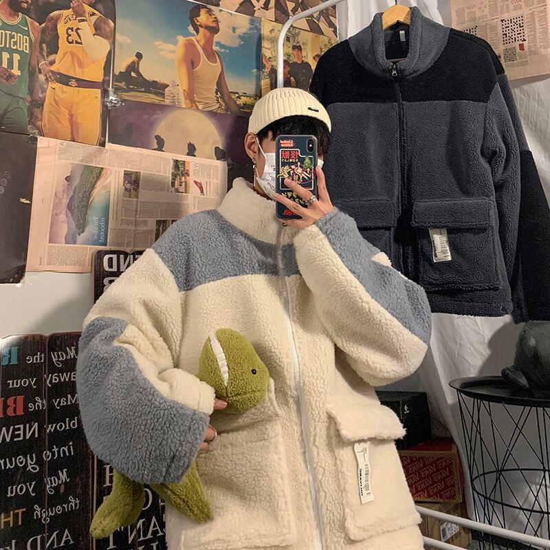 子羊ベルベット暖かいパッド入りジャケット男性キルティングコート冬秋のトレンディ緩い肥厚コート原宿男性服 かわいい オータム 秋物 ウィンター 冬物 got95012364270