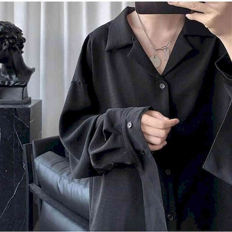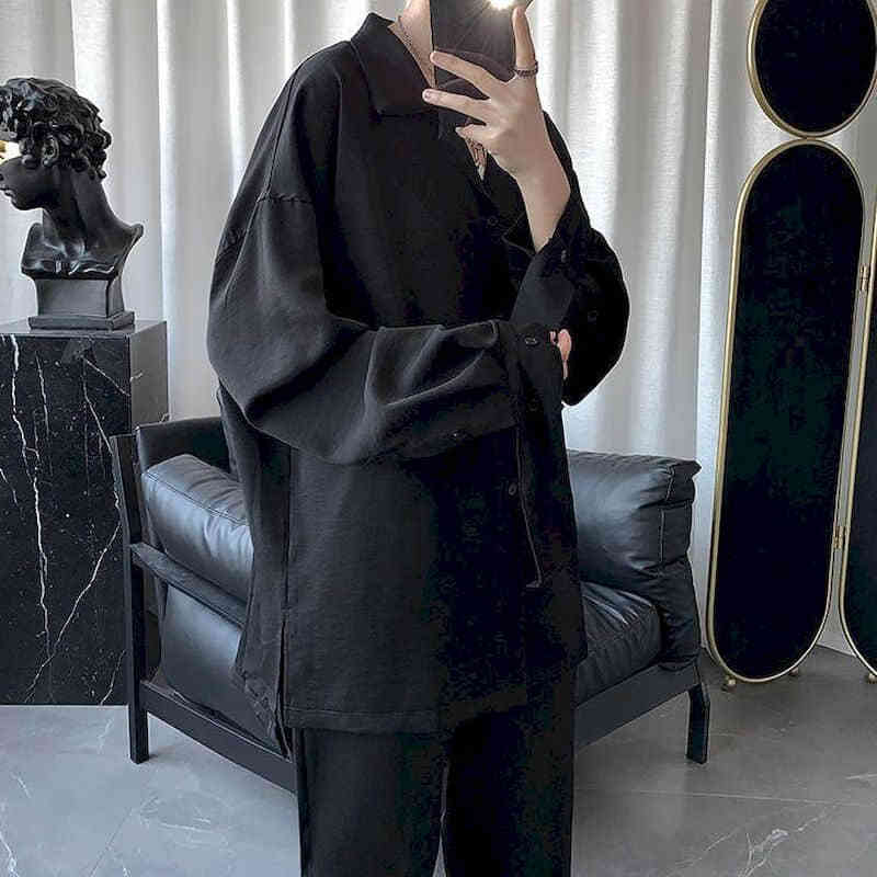 ゴシックパンク白黒ブラウス男性服カップル怠惰なシフォン蝶ネクタイシャツ男性春気質ドレープ ホワイト ブラック リボン スプリング 春物 got27597274398