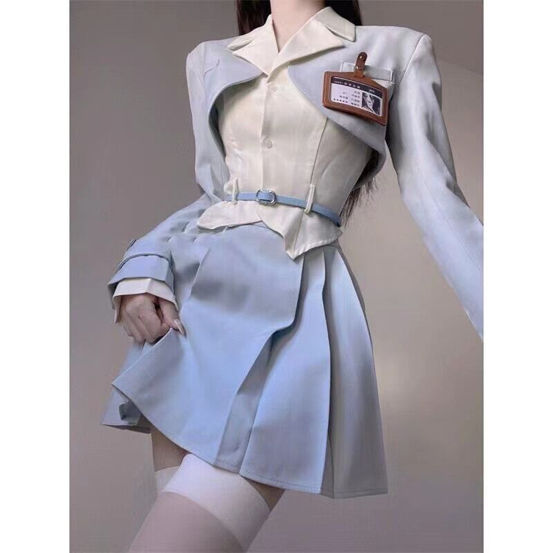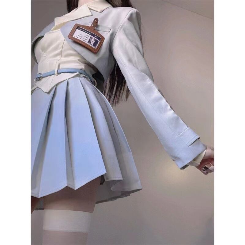 春スタイルスーツレディーススリムフィットイレギュラーシャツ長袖ショートコートプリーツミニスカート3点セット ロング スプリング 春物 got77446542231