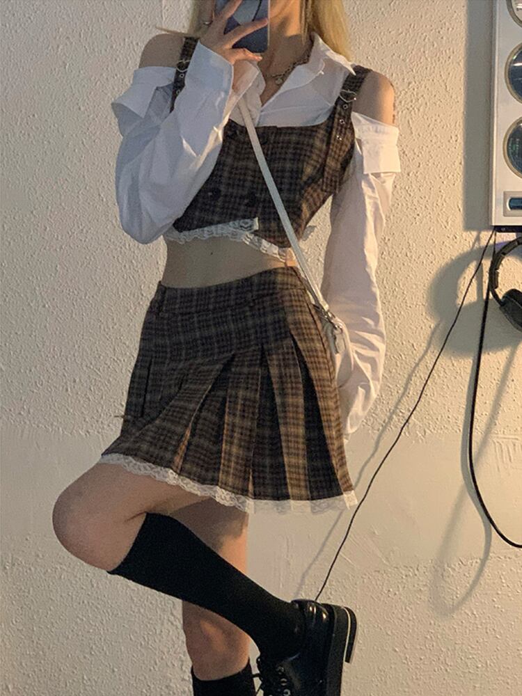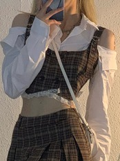 ストリート女性 3 個スーツタンク + クロップシャツ + スカートオフショルダー非対称セクシーな服の女性セット服 got71456607467
