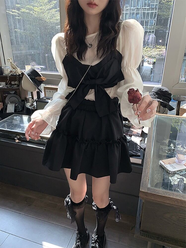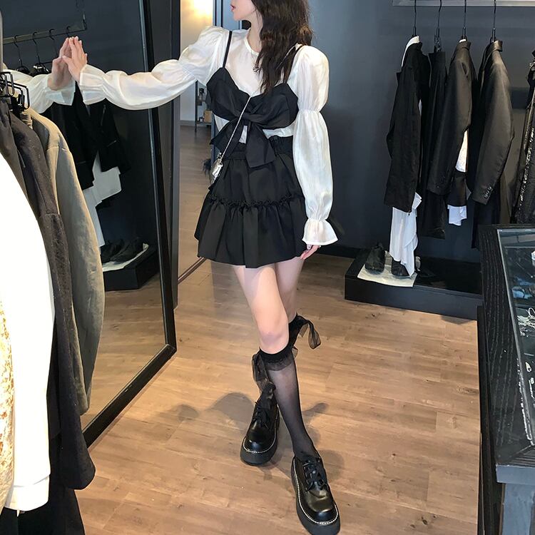 スカートセット プレッピー気質 トランペットスリーブ インナーシャツ サマーシャツ トップス レディース 2点セット 夏物 got91047175465