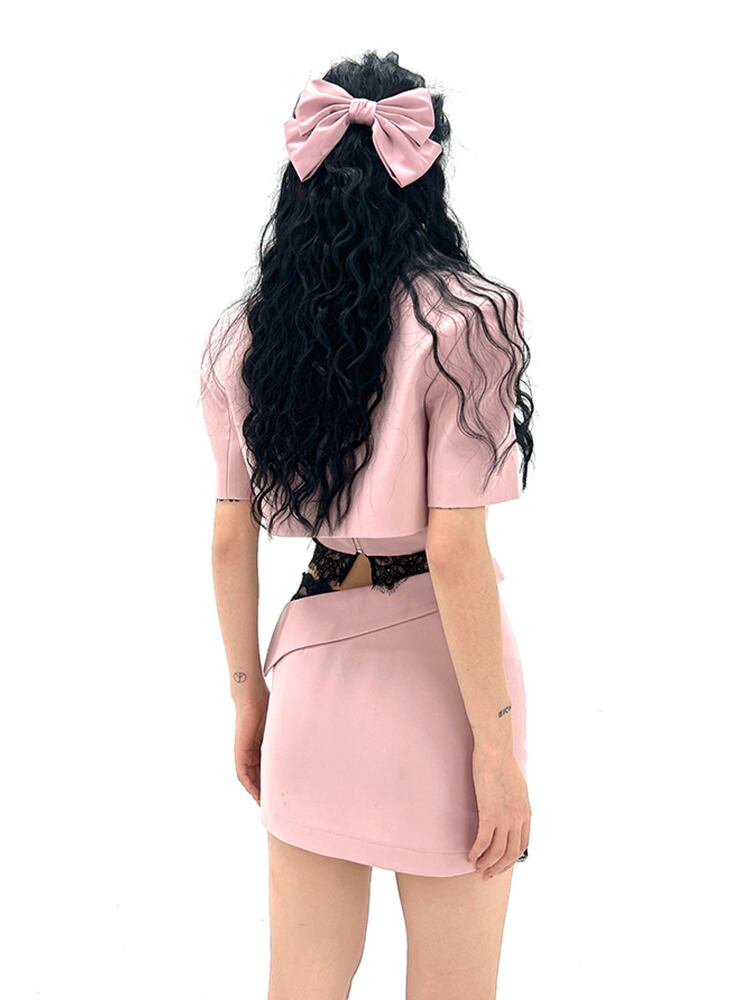 Gothiscyn 女性スーツ ピンク ブレザー + ベスト + スカート 3 点セット スーツ ホット ガール クロップ トップ セクシー ストリート女性 got41563558732