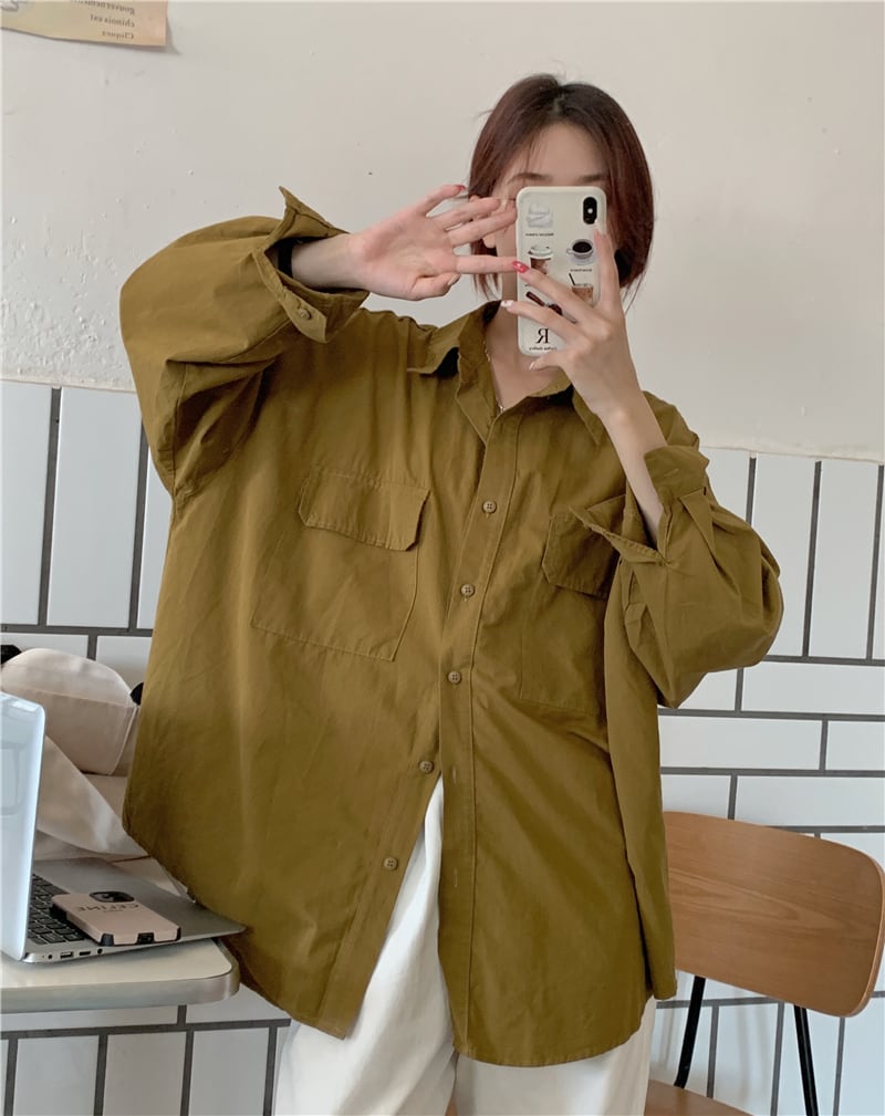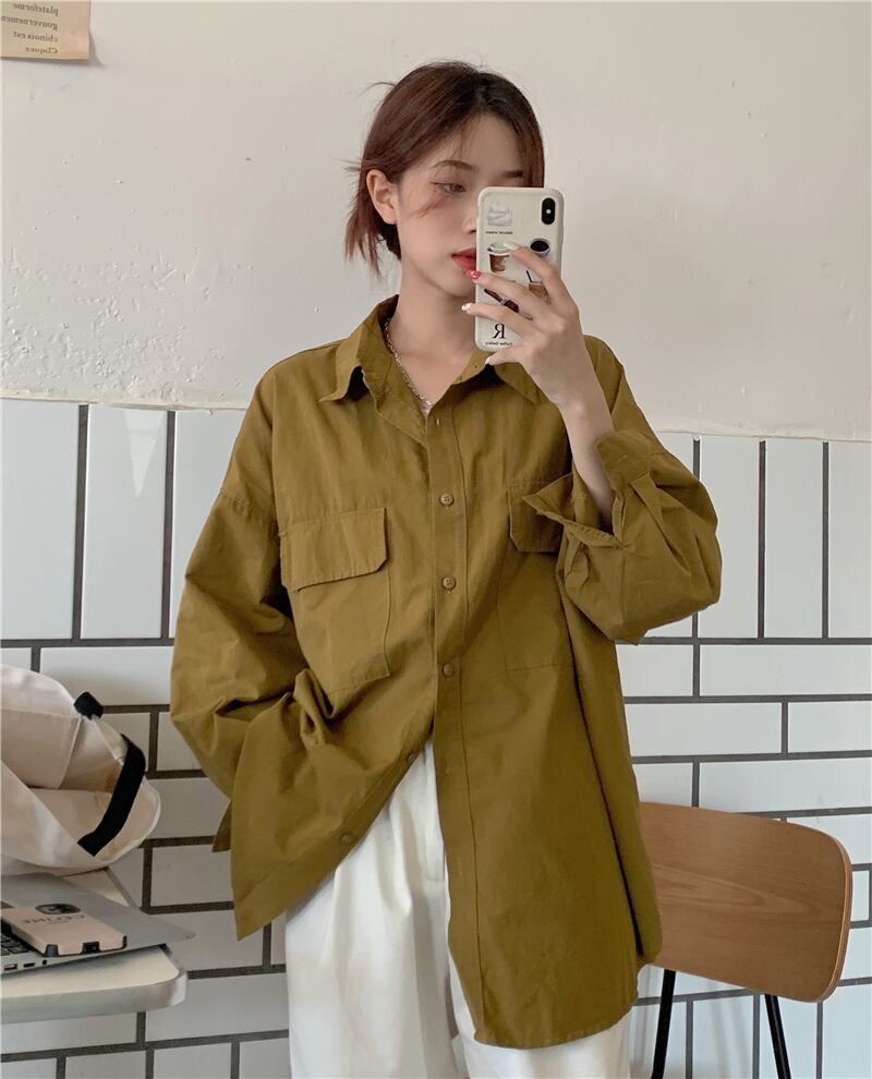 白シャツ女性無地ブラウスルーズボタンブラウス秋-グレードシャツ長袖プレッピースタイルレディーストップス ロング ホワイト オータム 秋物 ソリッドカラー got6093530303