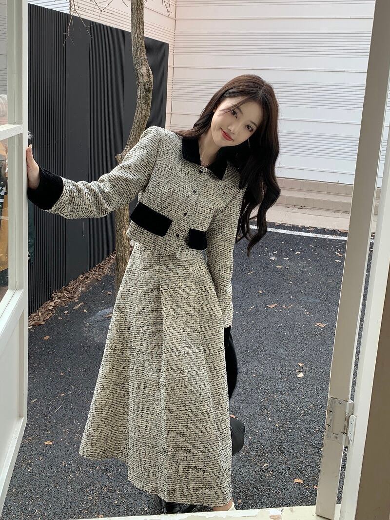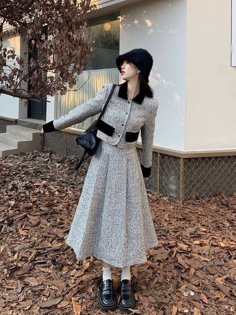 通勤スーツ女性秋エンドカラーコントラスト長袖ショートコートロングスカートオフィスレディツーピースセット オータム 秋物 会社 学校 通勤や通学にも got78294354599
