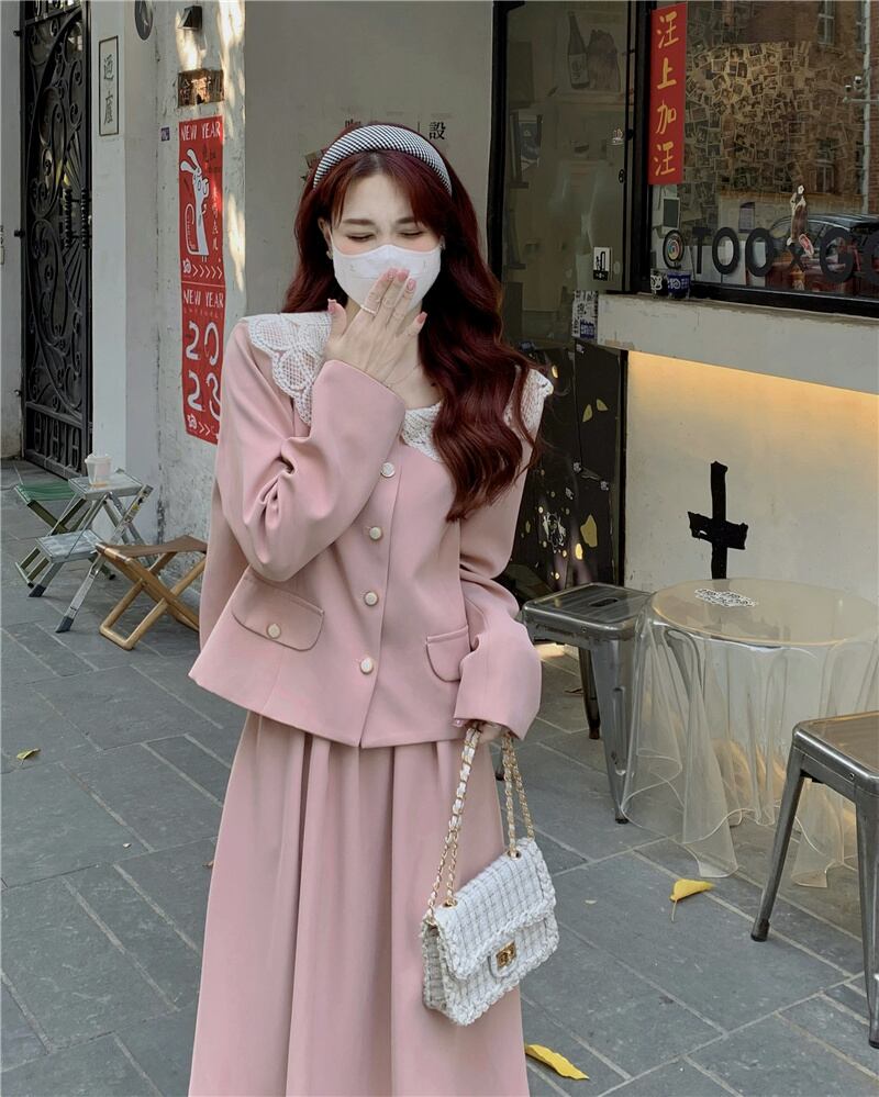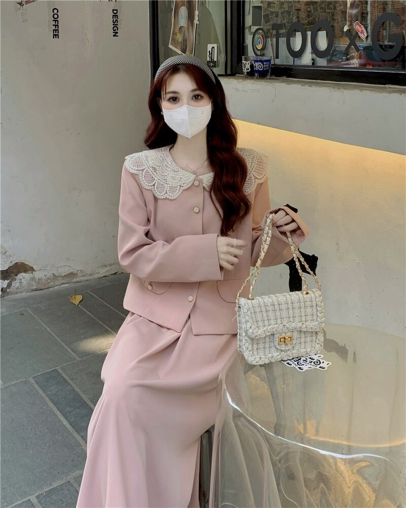 スウィートガール春薄いスーツの女性のスタイルソフトレース襟コートウエストスカート 2 点セット服 大人ガーリー キュート カジュアル スプリング 春物 got65673827206