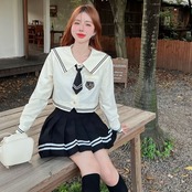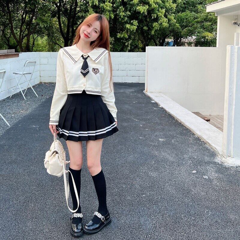 Style JK スーツ ese ネイビー 襟 コントラストカラー シャツ セーラー服 プリーツスカート 2点セット got77867537694