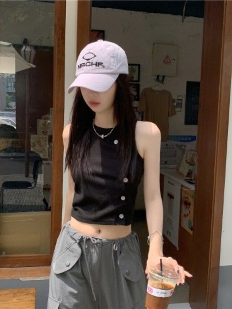 ピンク ワイドレッグ パンツ ニッチ サイド ボタン ショート ベスト + レースアップ スリム オーバーオール パンツ Y2k フェアリー グランジ パンツ レディース ワイドパンツ got89279578119