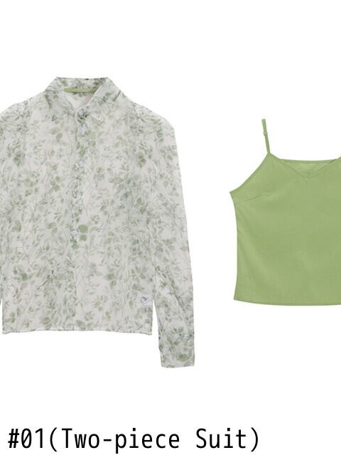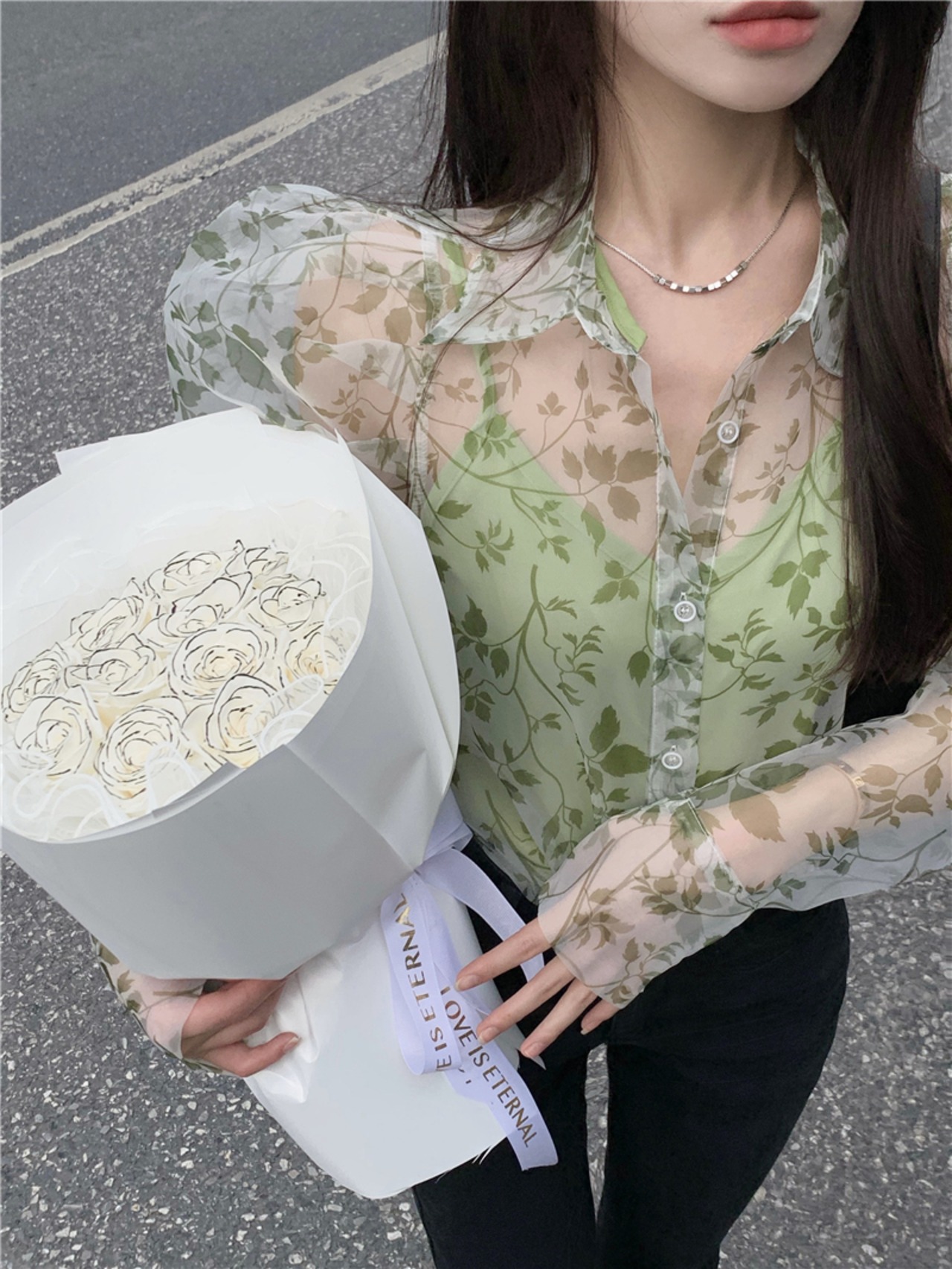 Gothiscyn 女性シャツブラウス花柄パフスリーブシャツ夏日焼け止めアウターウェアセクシーなインナーベストスリングシフォントップブラウス サマー 夏物 got57452462238