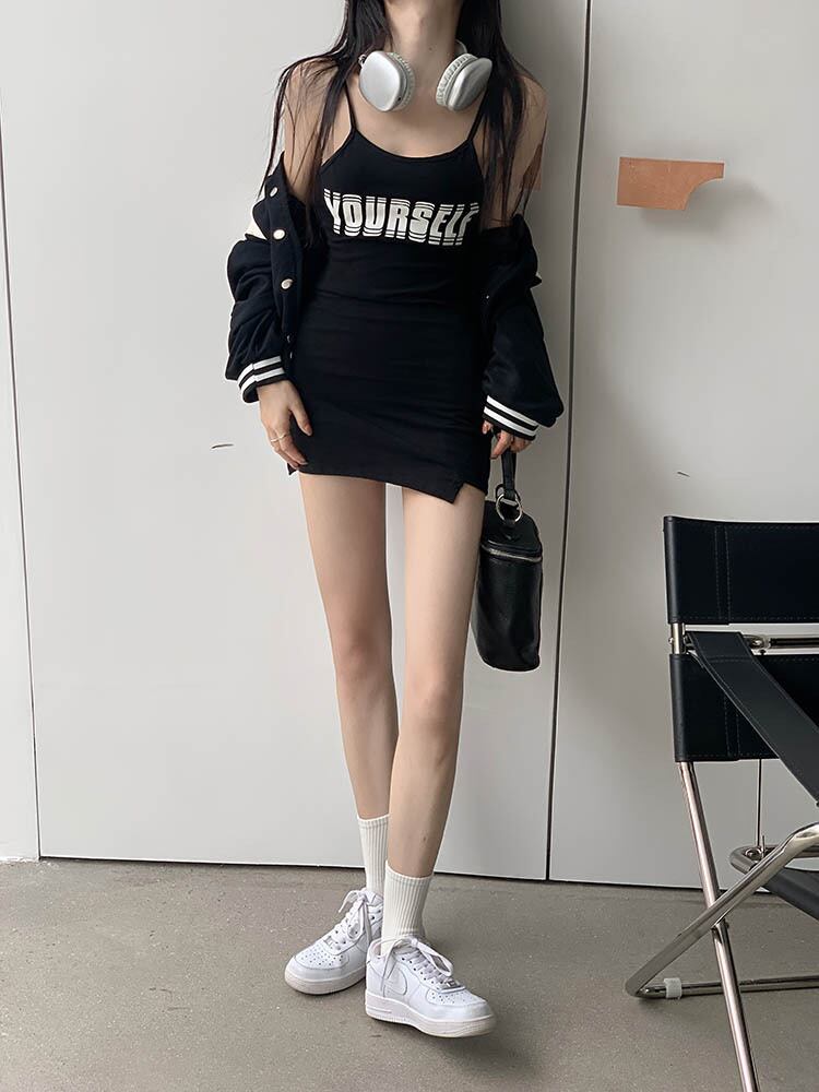 ツーピースセットレディース衣装スーツストライプコートサスペンダードレス梨花服秋/冬黒セット ブラック オータム 秋物 ウィンター 冬物 got90279793416