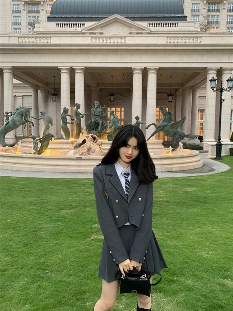 Gothiscyn プレッピー JK スーツ スカートスーツ 春 ショート 小さめ スーツ ジャケット プリーツスカート 3点セット シック スプリング 春物 got57846403713