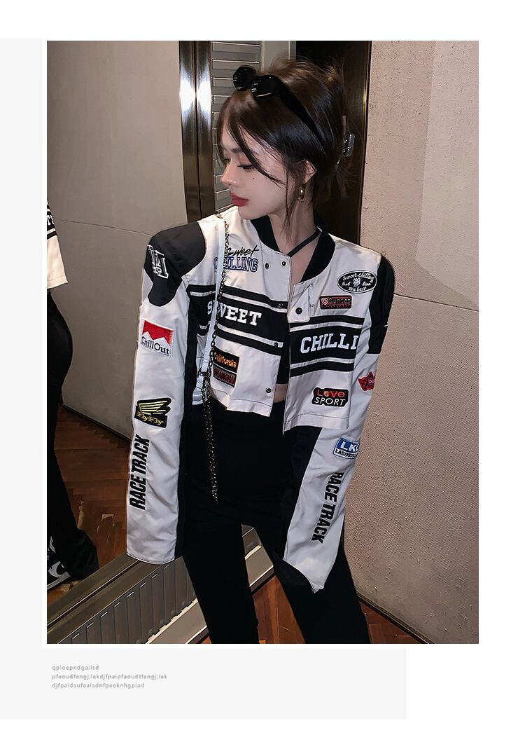 レトロなオートバイの摩耗野球ジャケット冬服女性原宿フレンチルーズレディースボタントップ かわいい ウィンター 冬物 got55512227586