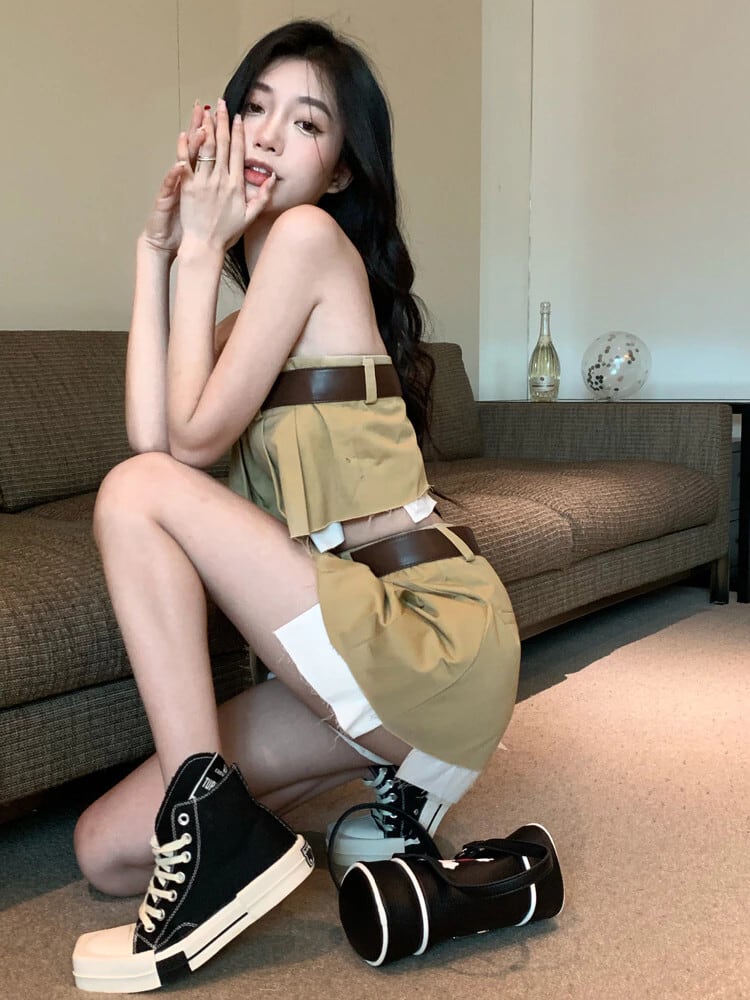Gothiscyn セクシーなスカート セット女性衣装カーキ チューブ トップひだスカート 2 ピース スーツ夏クラブ ストリート サマー 夏物 got68569715713