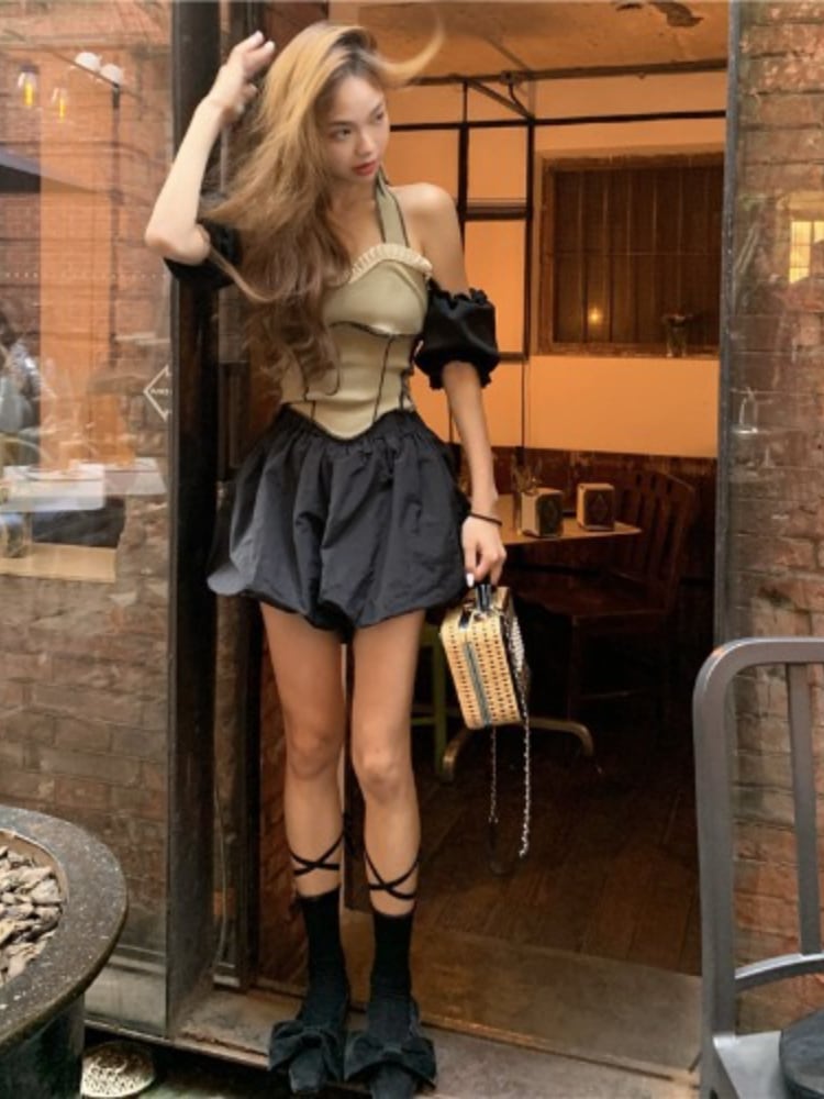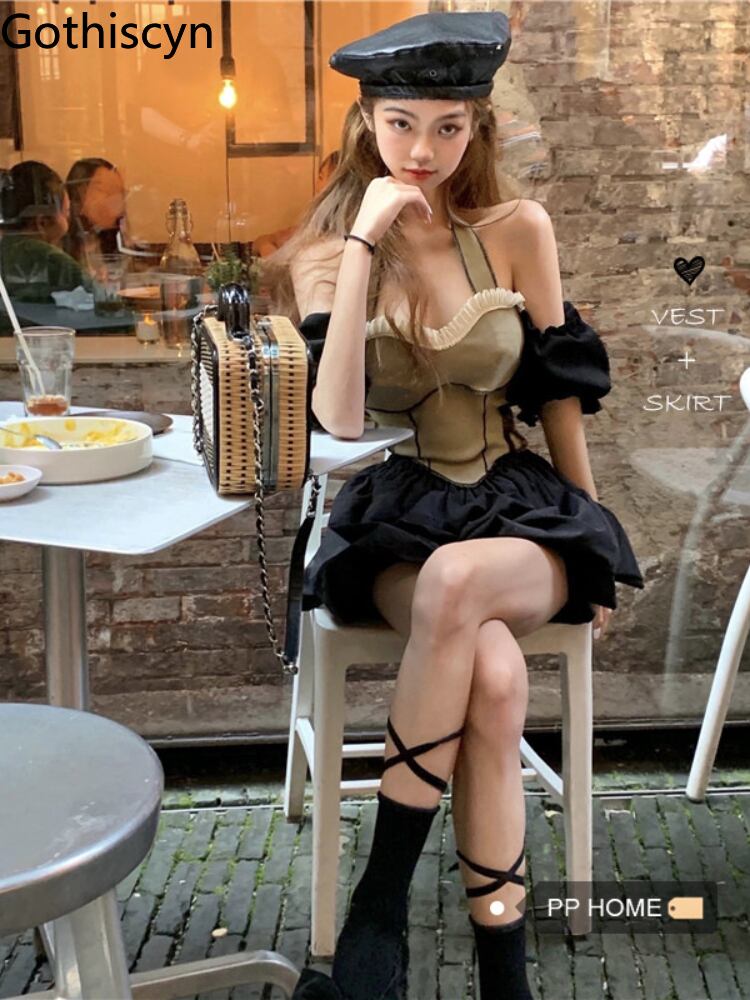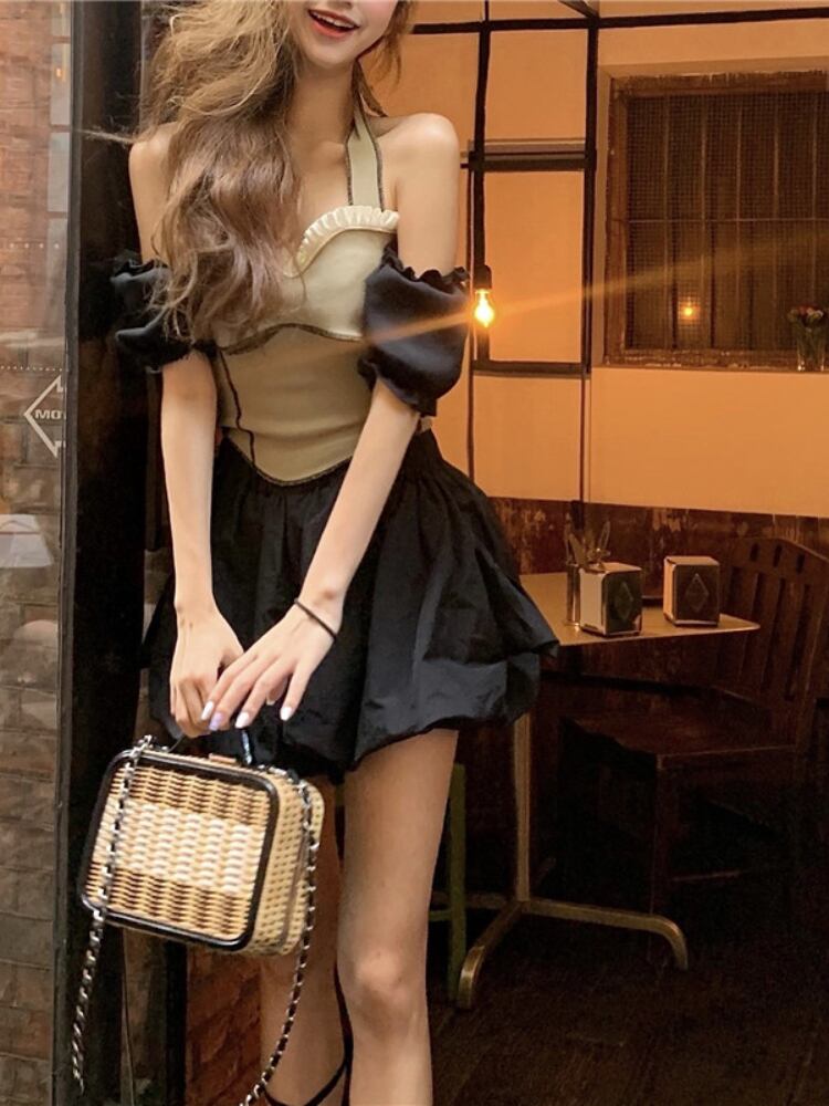 スカートセットホットガールストリートスーツ夏ショートホルタートップスタイルスカートツーピーススーツ サマー 夏物 got84235806527