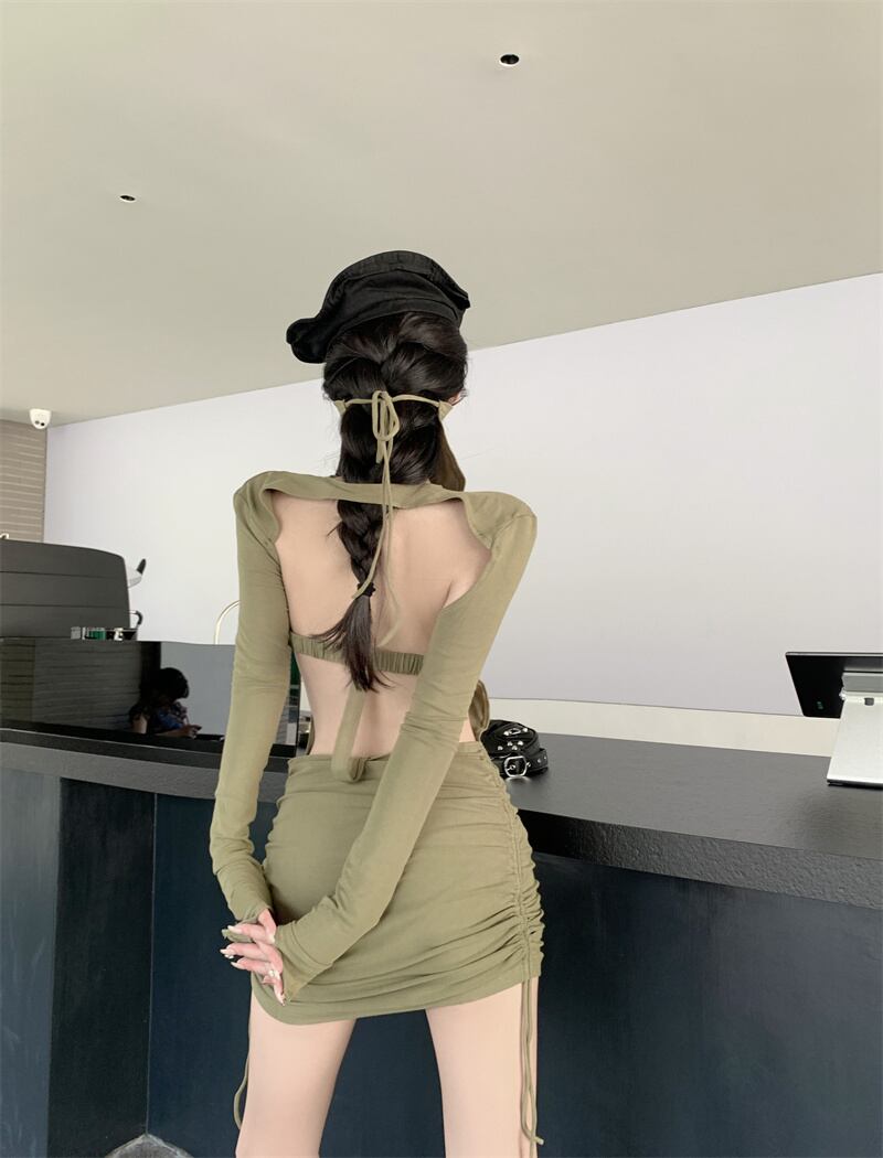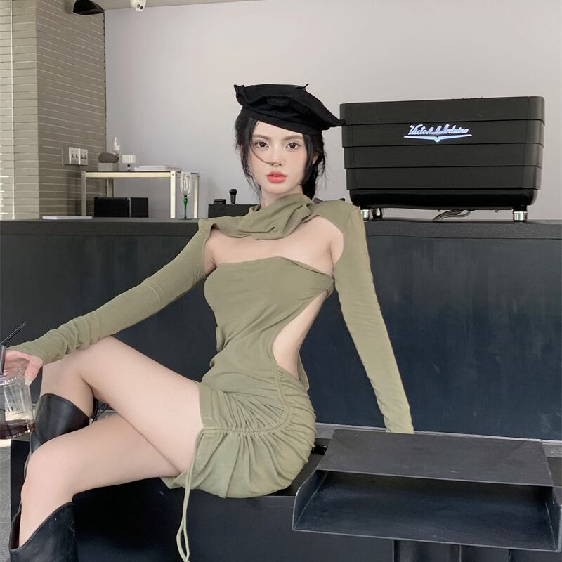 セクシーなドレスシースほろ苦いスタイルのドレスエンパイア女性ソリッドロングスリーブ膝上ミニスラッシュネックサマードレスレディース 長袖 大人ガーリー スウィート キュート カジュアル 夏物 ソリッドカラー got14856936919