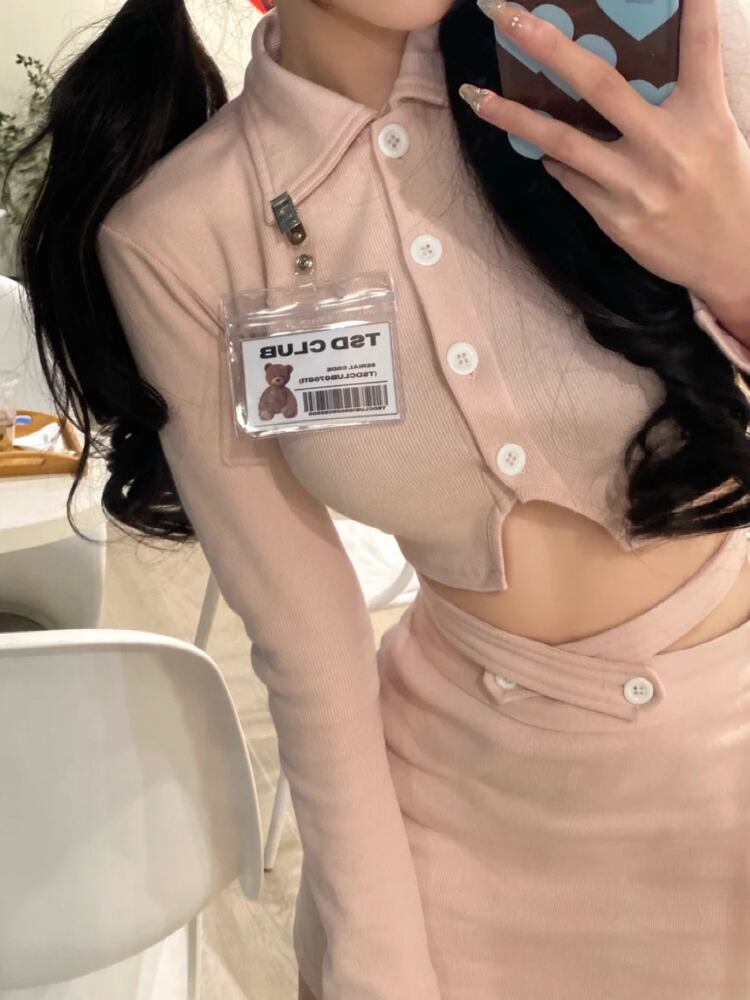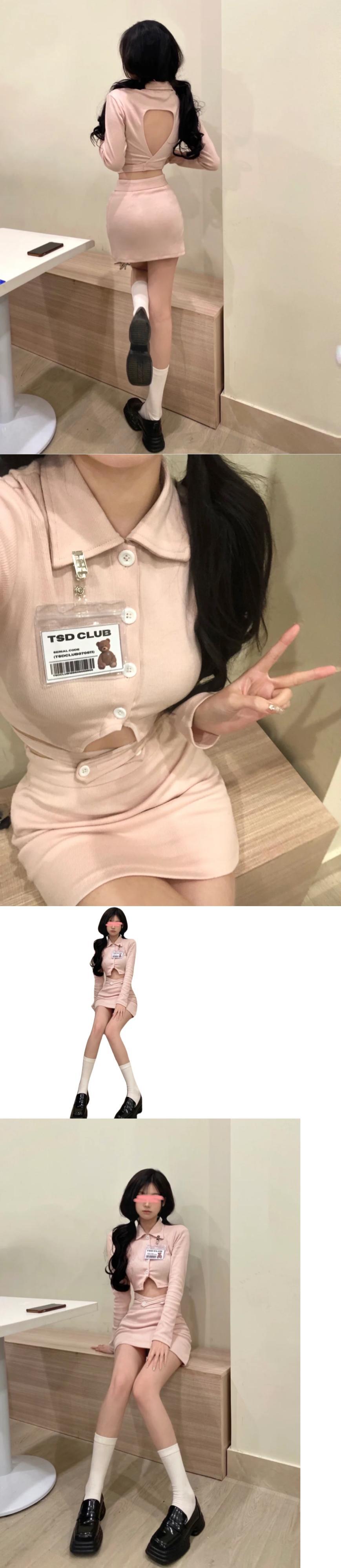 Gothiscyn プレッピーガールスーツネック不規則なクロップトップ背中の開いたホットスカート女性 2 個セクシーなピンクのスーツシックなスーツ got47320457883