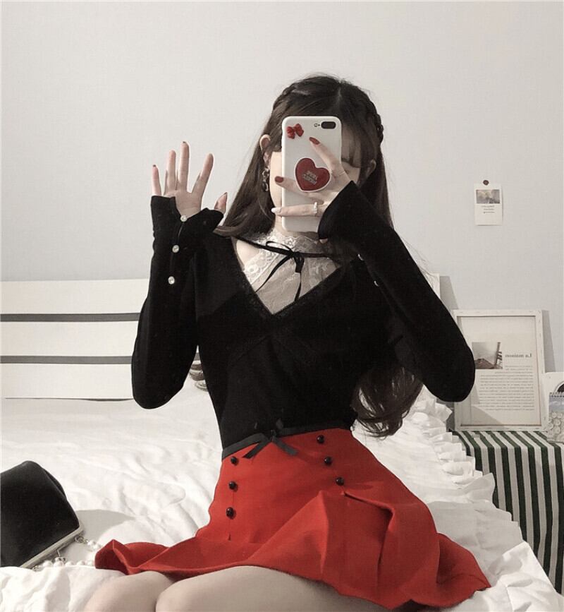 Sweet Girl スーツ レディース レース ホルターネック 長袖 スリム 薄手 Tシャツ ボトムス ショートトップ ウエストスカート 2点セット ロング 大人ガーリー スウィート キュート カジュアル got10007918586