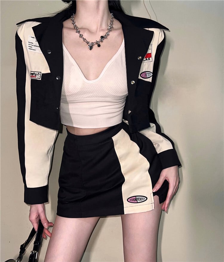 Gothiscyn ジャケット レディース スカートとクロップド セット 長袖 コート ウエスト ヒップ ラップ スカート 無地 婦人服 プレッピー スカート セット ロング ソリッドカラー got41887759777