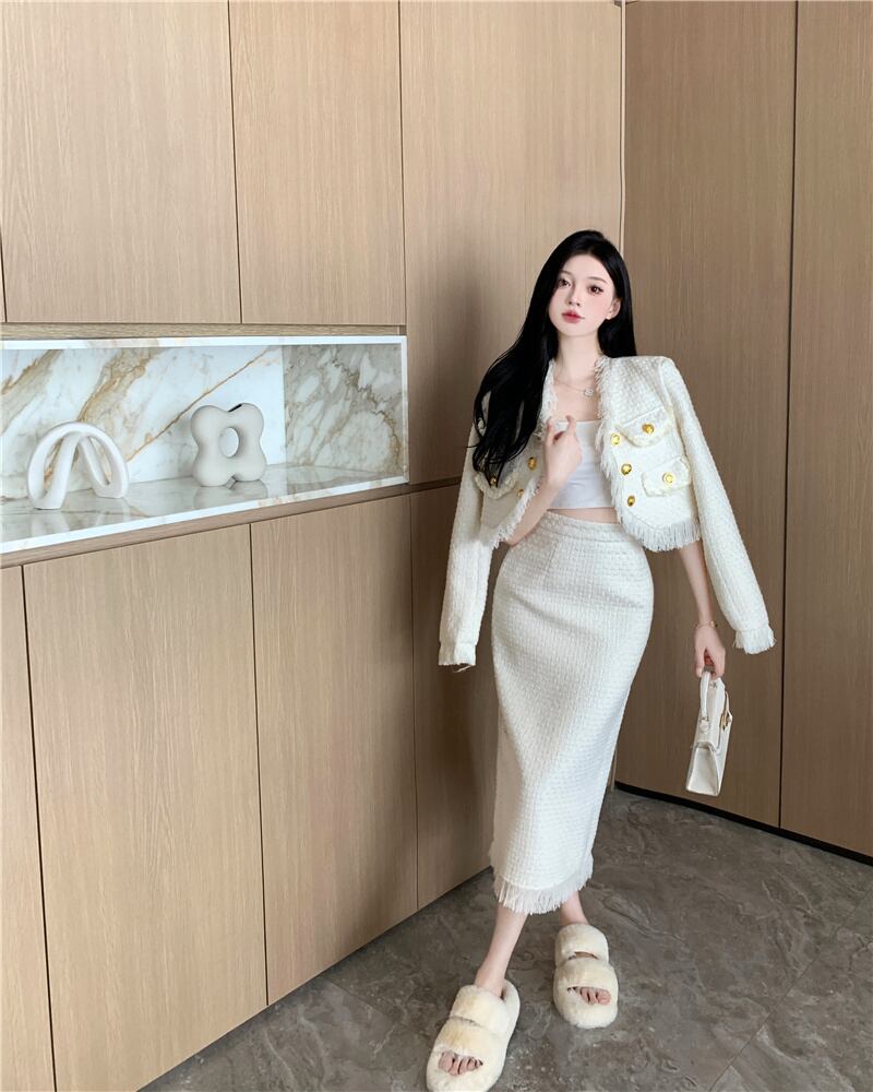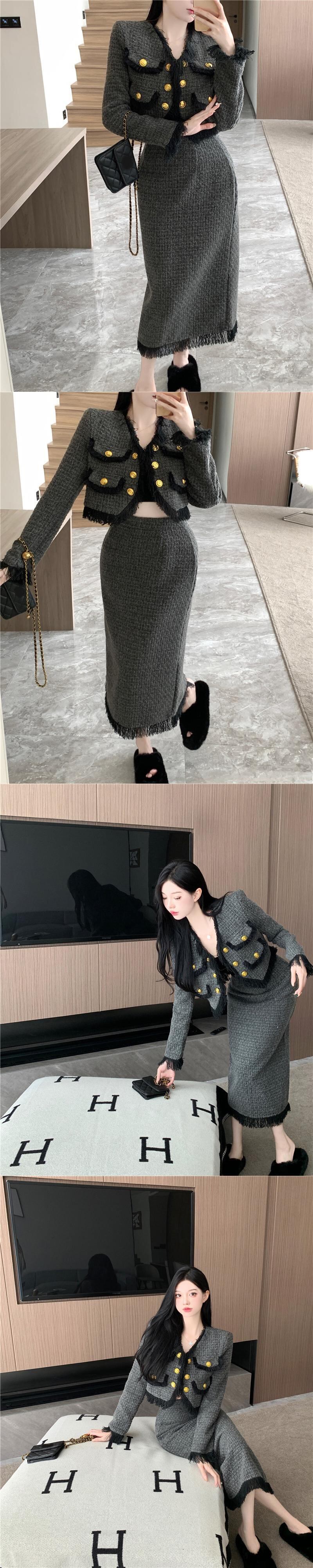 通勤女性のスーツ - 品質の長袖コットン コート ウエスト スリム テル スカート 2 点セット服 ロング got57569652297
