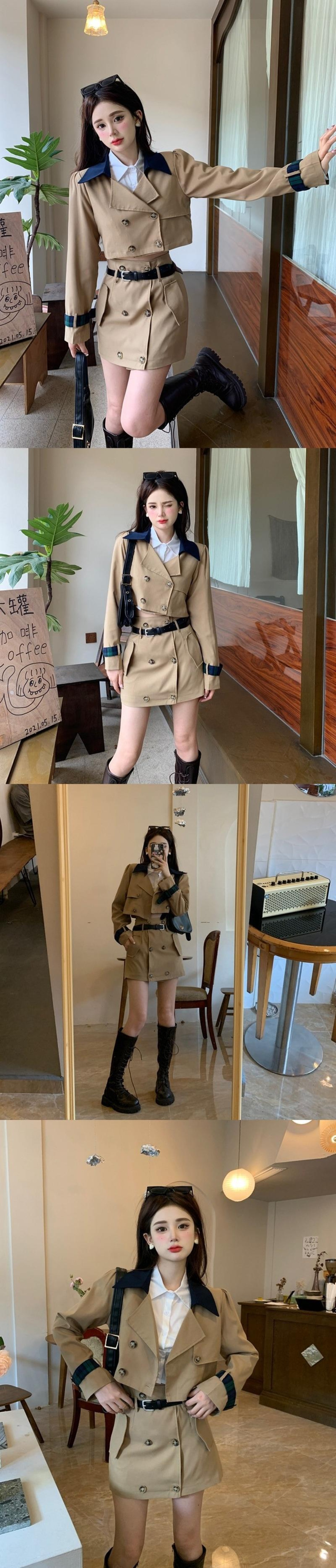 プレッピースカートセットスウィートクールホットガールショート長袖スーツウエストスカート秋 3 ピーススーツ女性 ロング 大人ガーリー キュート カジュアル オータム 秋物 got66359057125