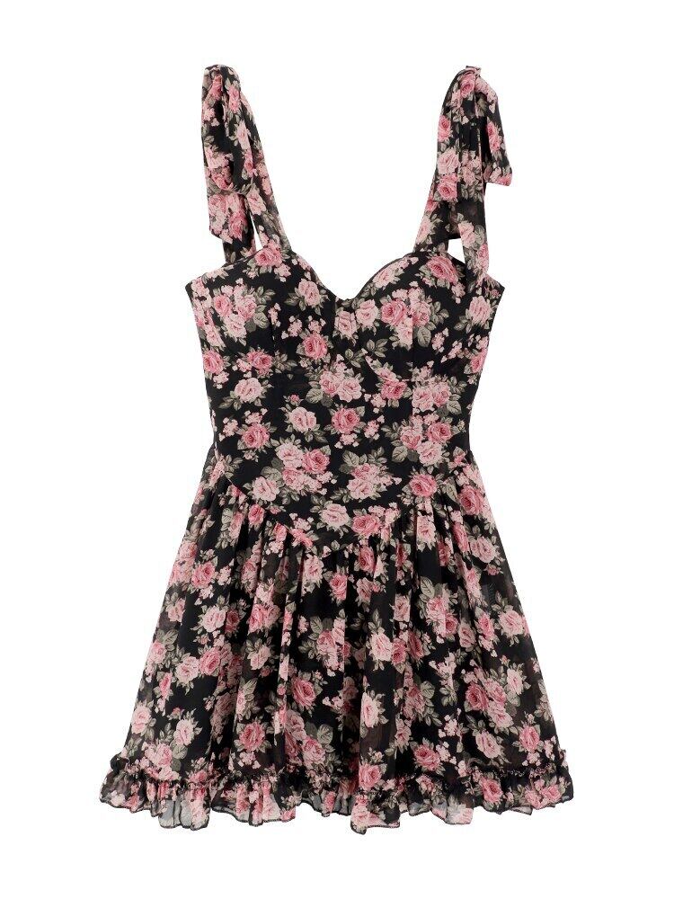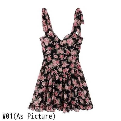ノースリーブドレス花柄サスペンダードレス女性の夏のフレンチボウタイショート Vestidos ウエストウッドイヤーローブ リボン サマー 夏物 got42334135731