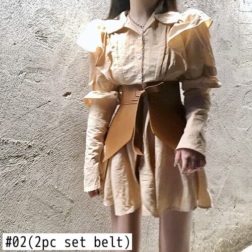 ツーピースセットレディース衣装スウィートパフスリーブベルトAラインドレス無地梨花服秋/冬セット 大人ガーリー キュート カジュアル オータム 秋物 ウィンター 冬物 ハーネス ソリッドカラー got24208132921
