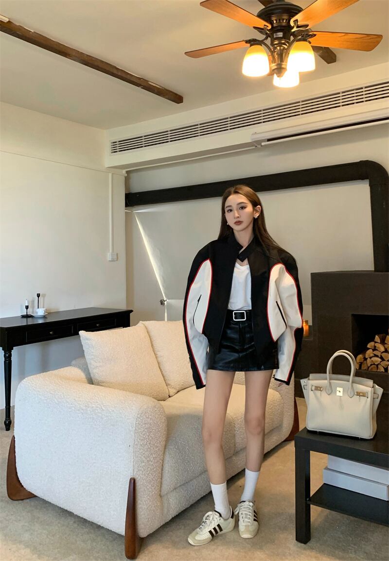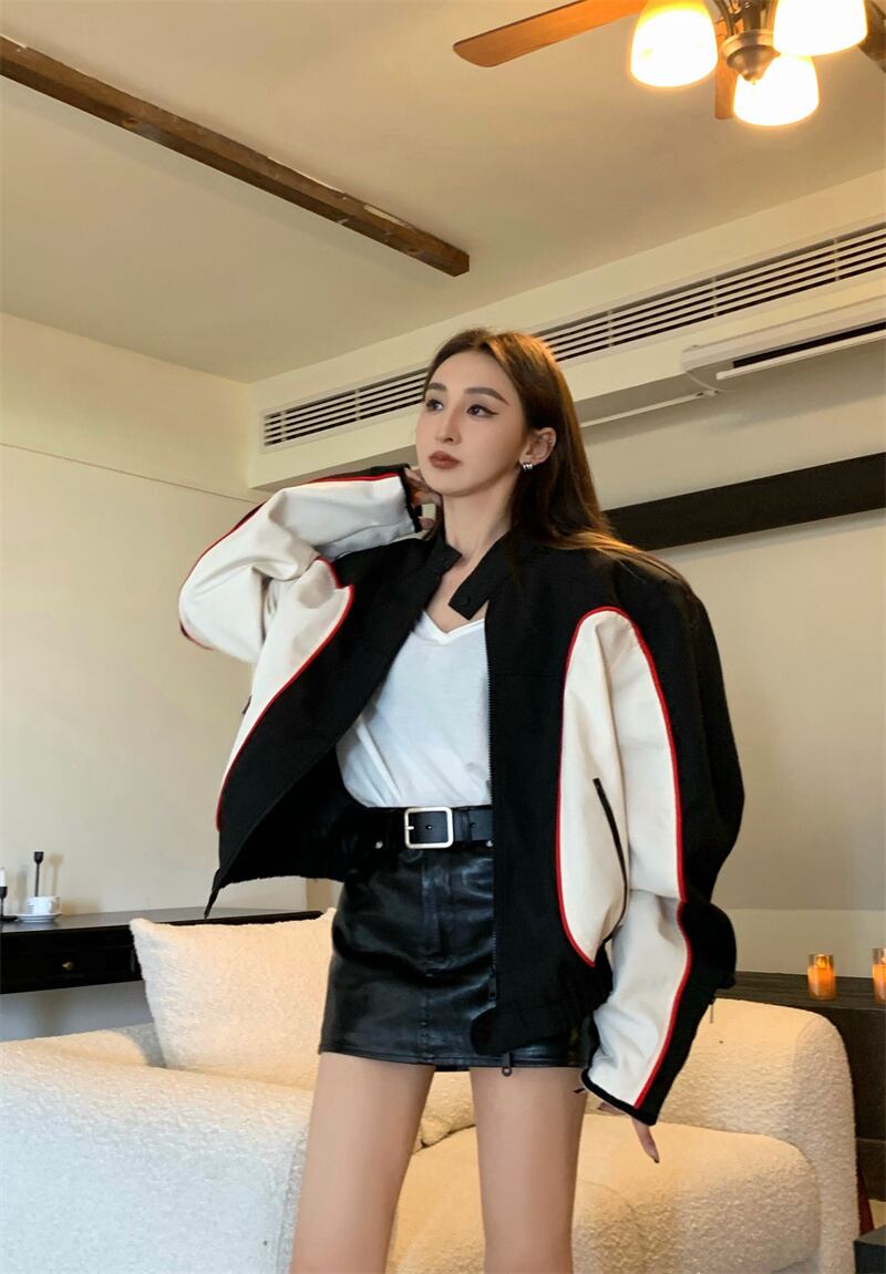 香港スタイルのスーツの女性の緩い野球カーディガン コート ウエスト ラップ ヒップ PU レザー スカート 2 点セット got38066222946