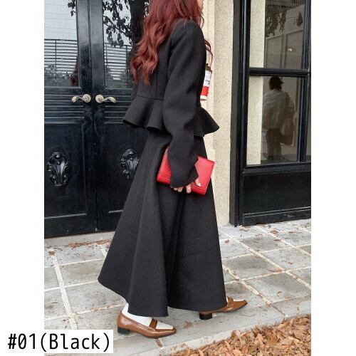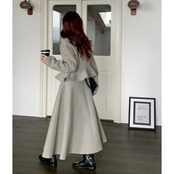 Style オフィスレディスーツ ウール ウエストクロージング 薄手コート Aライン プリーツ ロングスカート 2点セット 洋服 会社 学校 通勤や通学にも got55018400724