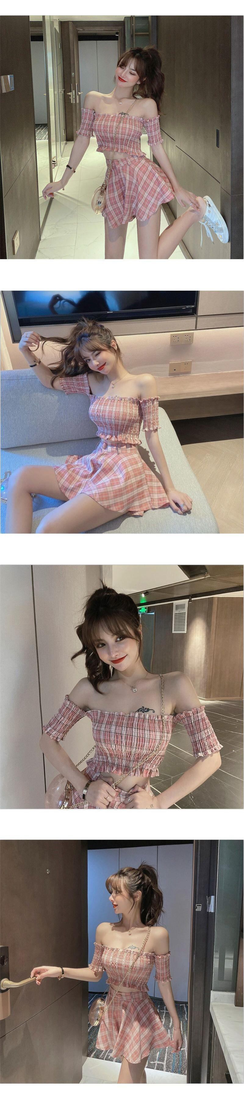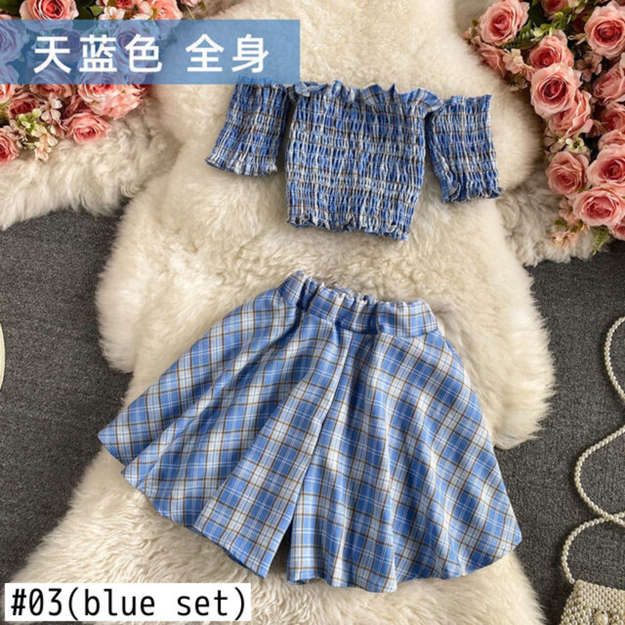 スウィートガールスーツレディーススタイル春夏オフショルダートップワイドレッグショーツツーピースセット服 大人ガーリー キュート カジュアル スプリング 春物 サマー 夏物 ブルマー ワイドパンツ got11577797671