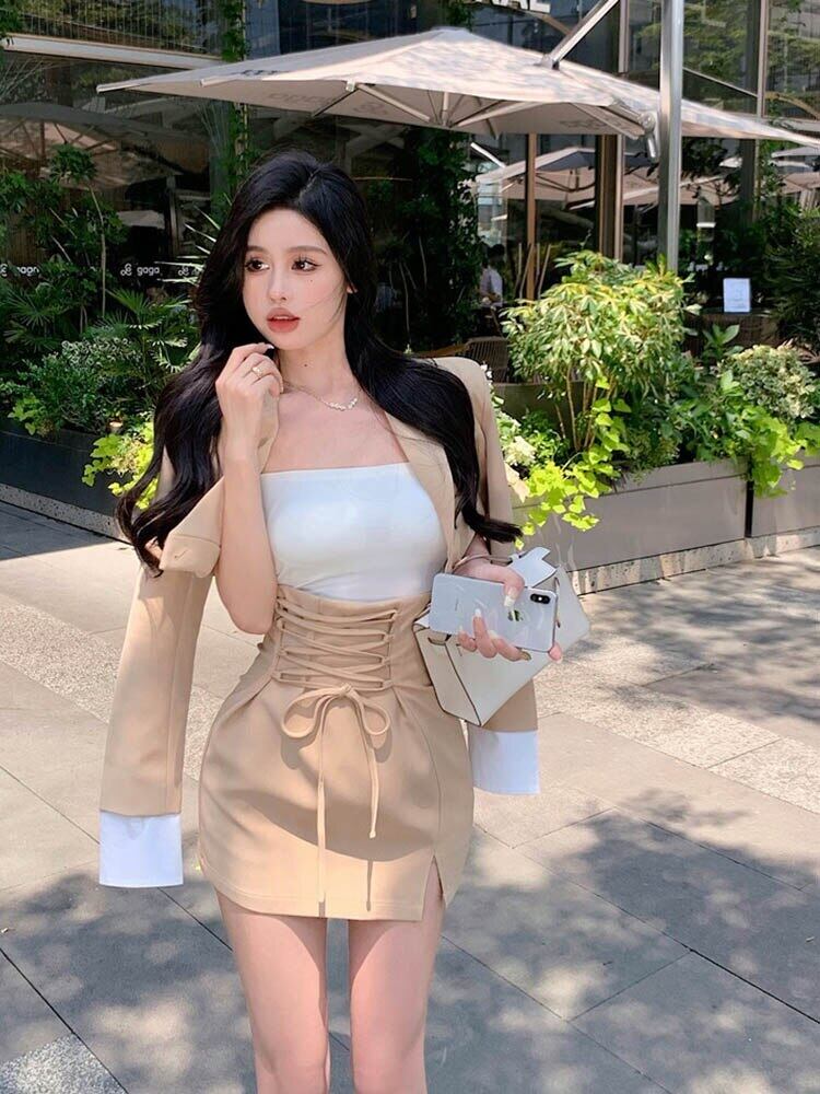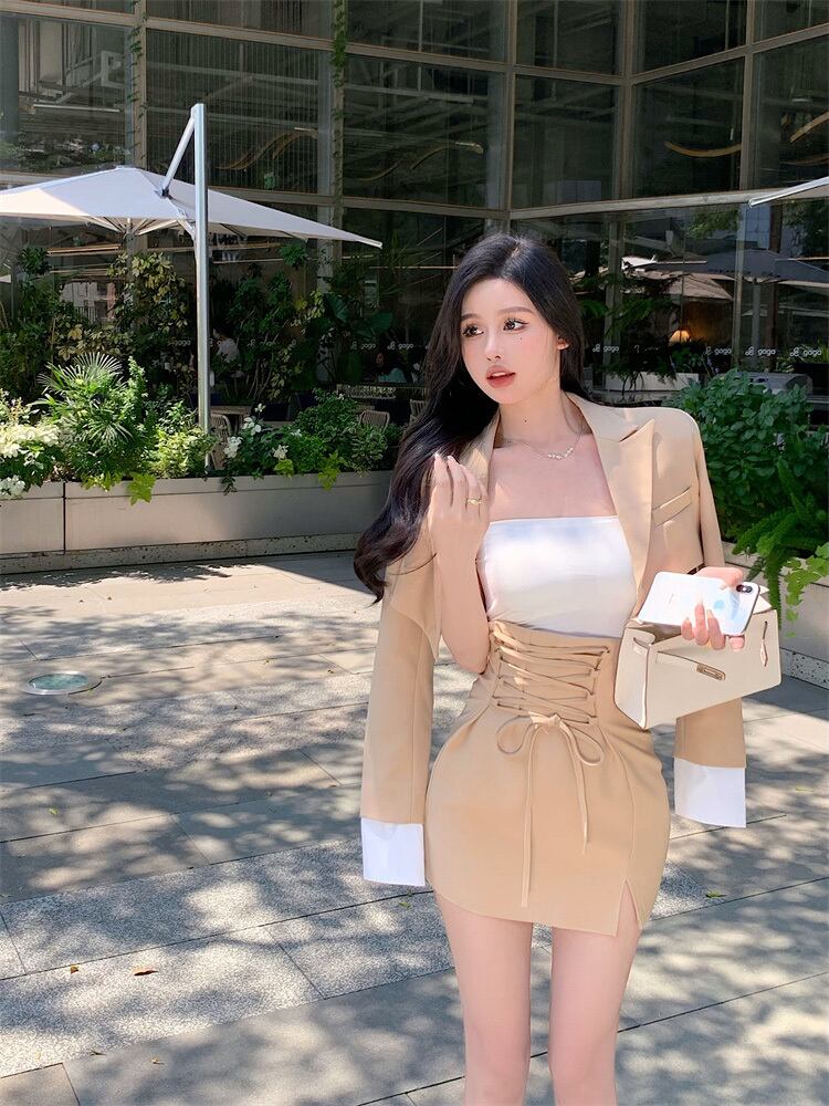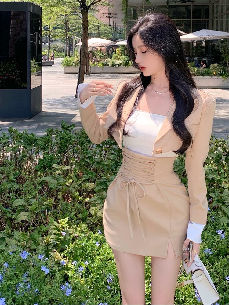 Gothiscyn ツーピースセットレディース衣装スプライシングスーツコートウエストヒップラップスカート無地梨花服秋スカートセット オータム 秋物 ソリッドカラー got41577285695