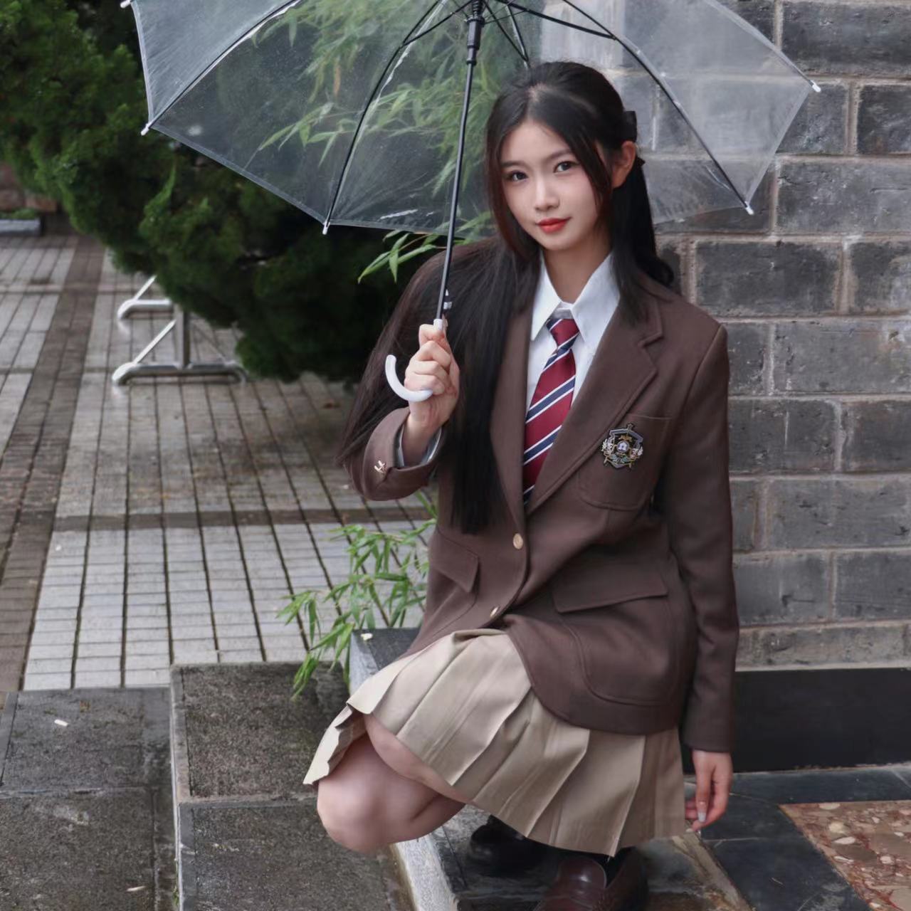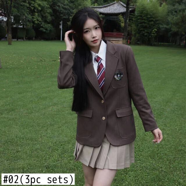 Gothiscyn 冬の女性ショートスカートセット白シャツコートプリーツスカートレトロ 3 点セットプレッピー女性衣装 ホワイト ウィンター 冬物 got17491553960