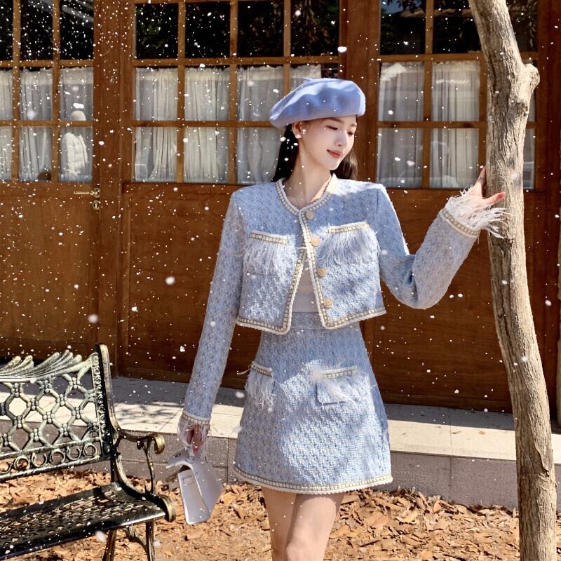 Sweet Girl スーツ レディース 秋冬 長袖 ショートコート ミニスカート フリルリボン シャツ 3点セット ロング 大人ガーリー スウィート キュート カジュアル オータム 秋物 ウィンター 冬物 got74972020247