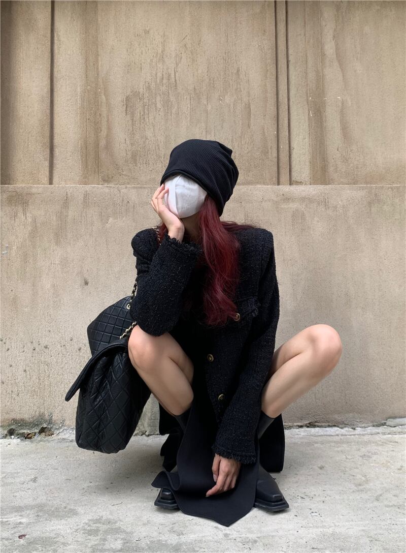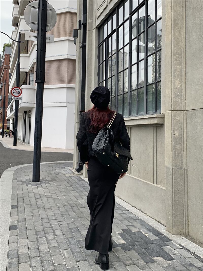 ホットガールストリートスーツ黒長袖コート女性の冬のウエストスプリットロングスカート 2 点セット服 ブラック ウィンター 冬物 got43614080225