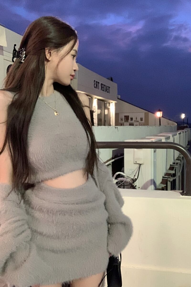 グレードミンクの髪の模造フレンチスタイルのスーツの女性のロングカーディガンコートベストショートスカート 3 点セット服 got79045013685