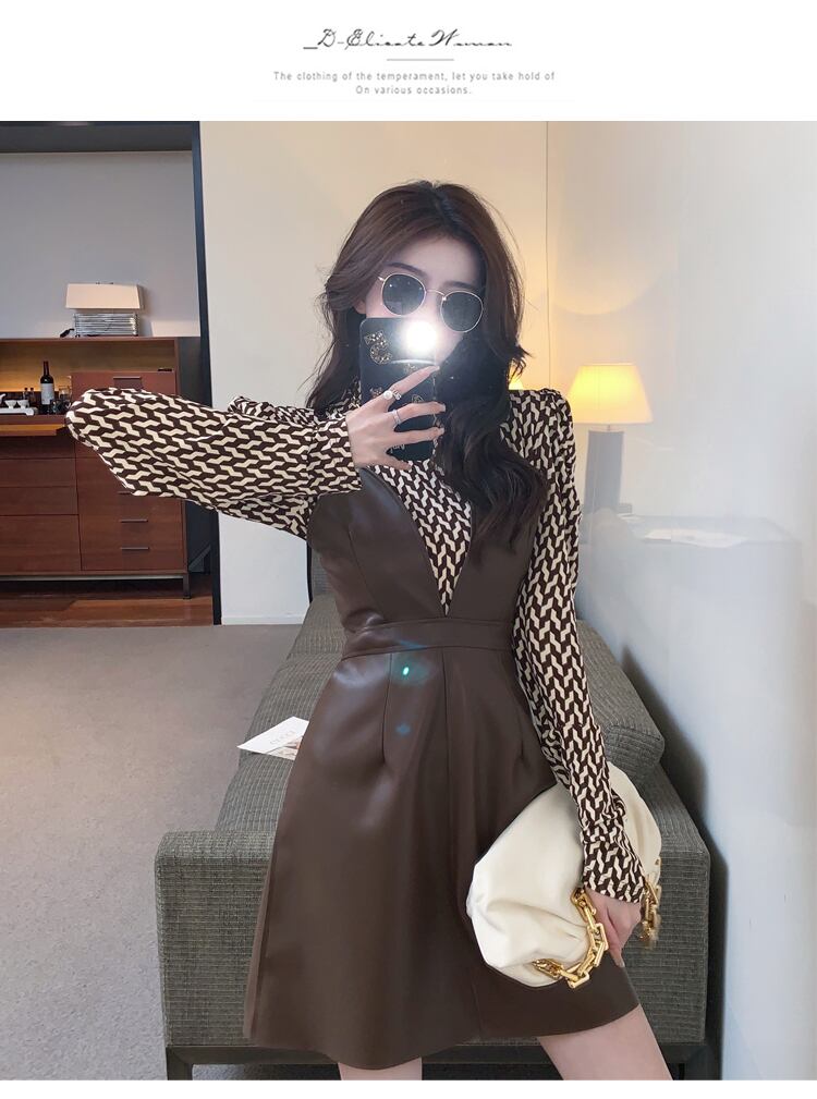 Gothiscyn ツーピースセットレディース衣装花トップ長袖 PU レザースリングウエストスリムドレス梨花服秋セット ロング オータム 秋物 フラワーデザイン got51490765622