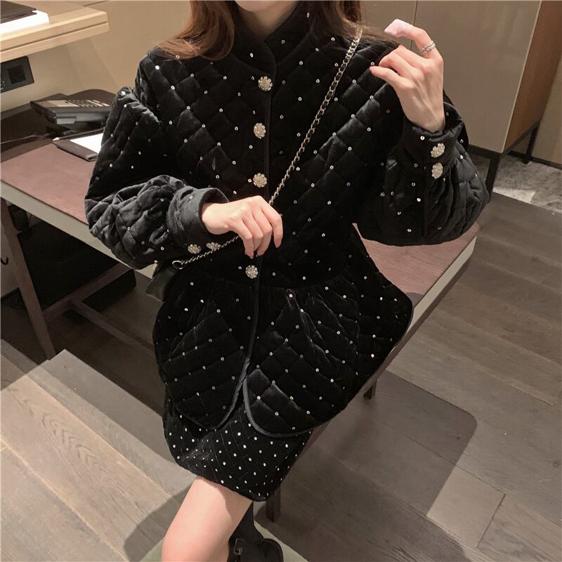 ed ブラック スワン ダイヤ ボタン フラッシュ チェック柄 ランタン スリーブ ジャケット コットン コート レディース ウエスト スカート 服 ランタンスリーブ got34346883679