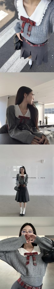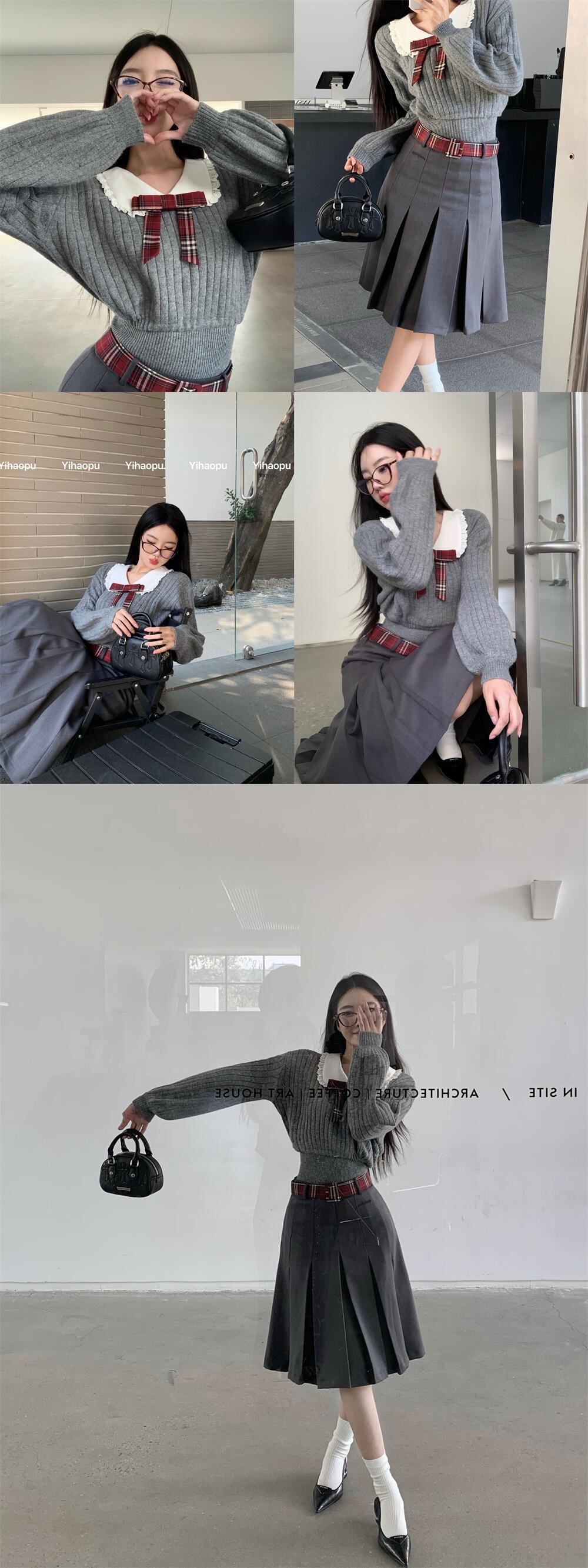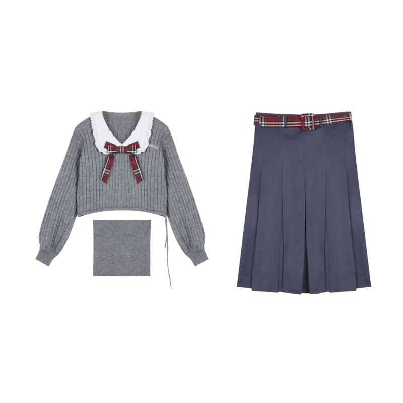 スタイルスーツレディースピーターパンカラールーズニットセーターレディース秋冬プリーツスカートツーピースセット オータム 秋物 ウィンター 冬物 got38424137074