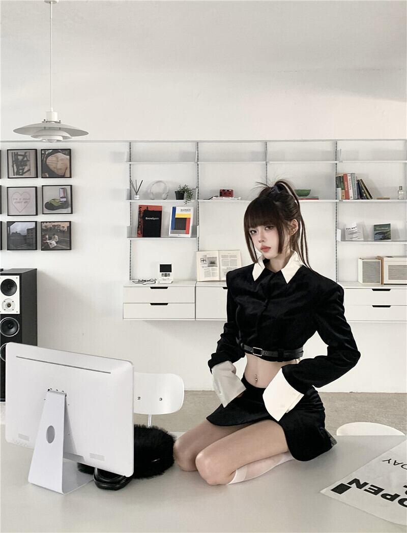 ホットガールブラックベルベットスーツ秋と冬スプライスピーターパン襟ショートトップアメリカンヒップラップドレス 2 点セット オータム 秋物 ウィンター 冬物 got12012705640