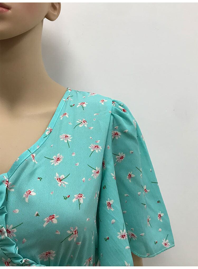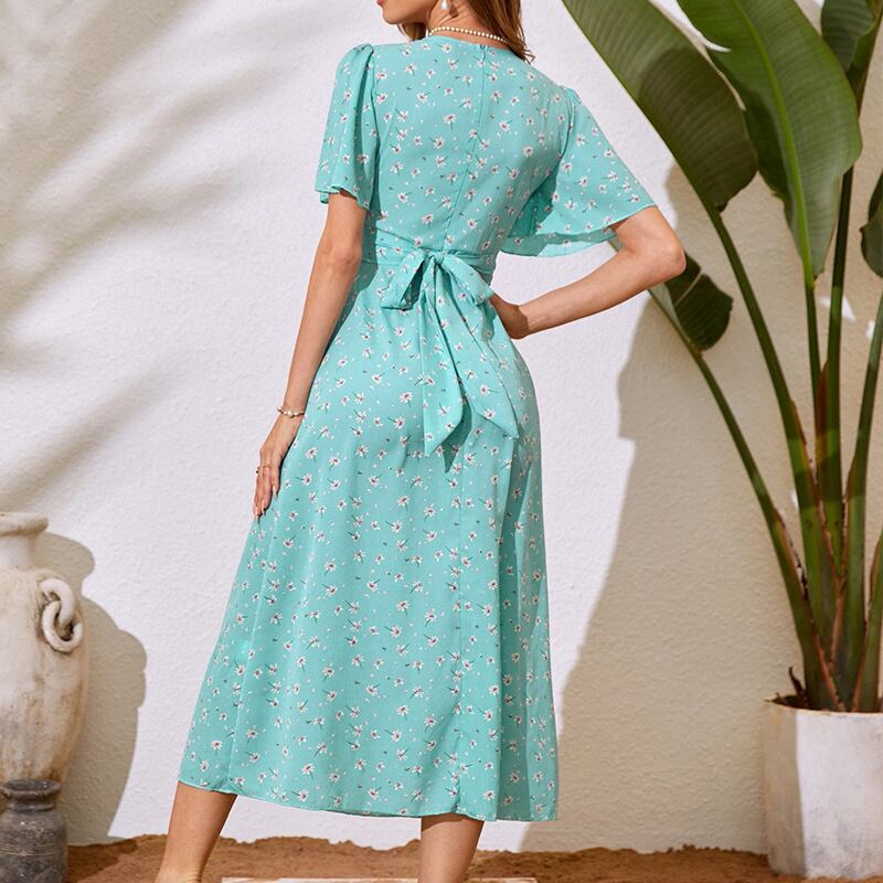 ロングドレス女性フレンチ V ネックレディースフラワープリントプレッピースタイル足首までの長さのドレス夏シフォン服 サマー 夏物 Vネック フラワーデザイン got56539152839