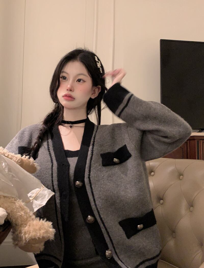 スウィートガールニットスーツ女性のルーズセーターカーディガン冬スリムサスペンダーストラップドレスツーピースセット服 大人ガーリー キュート カジュアル ウィンター 冬物 got39549565561