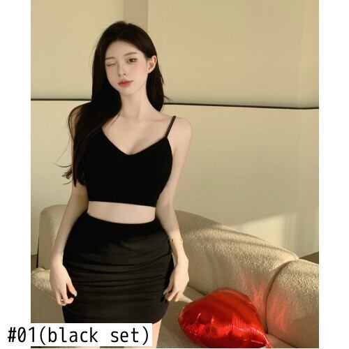 夏ホットガールズスーツ女性のサスペンダーベストショートトップウエストスリムラップヒップスカート 2 点セット服 サマー 夏物 got61916259795