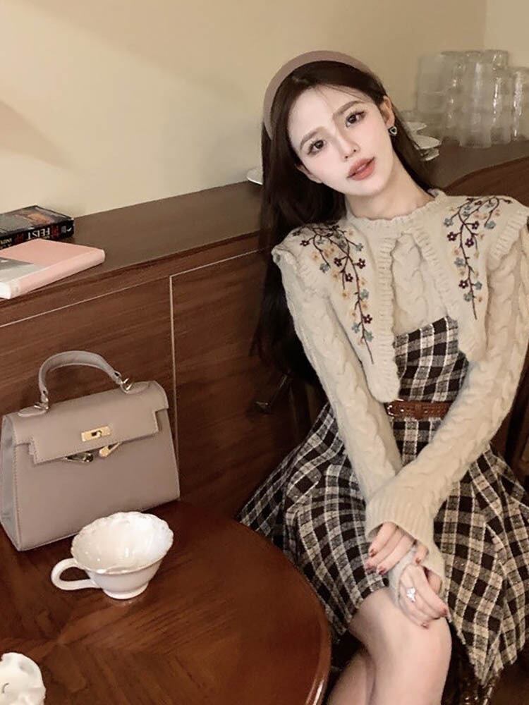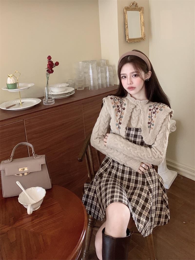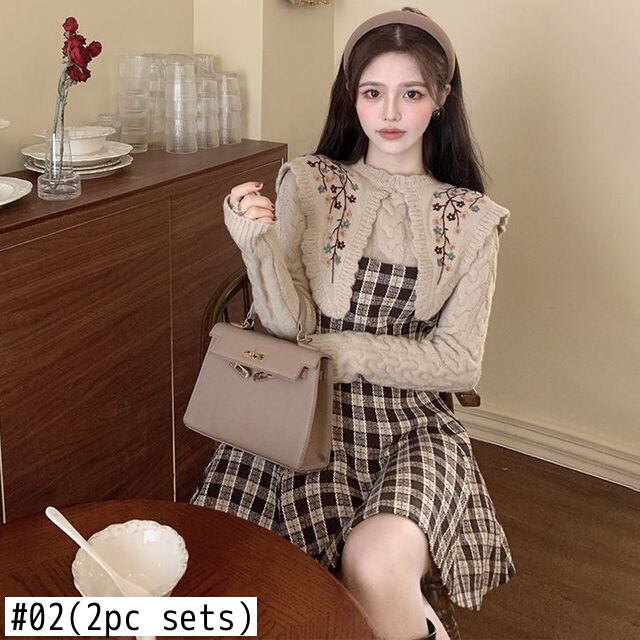 Gothiscyn ツーピースセットレディース衣装人形ネックニットセータートップレトロウエストスリングドレス梨花服秋スカートセット オータム 秋物 got64864991702