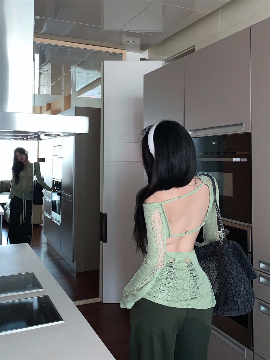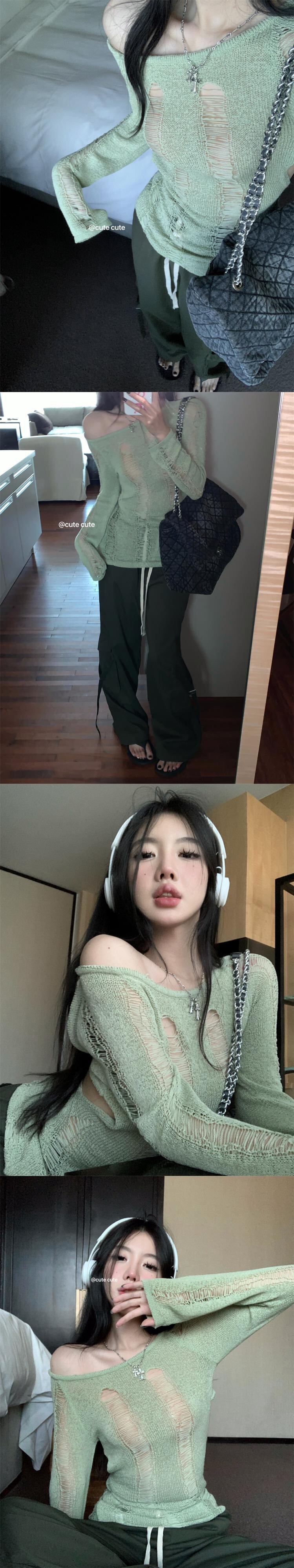 2 点セット レディース衣装リッピング長袖セーター スリム フィット純粋な欲望ニット セーター + ワイドレッグ オーバーオール ロング ピュア got46550584206