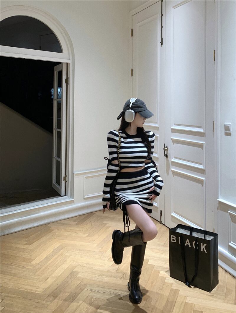 春と秋のホットガールスーツ女性のニット解体スリーブトップ巾着ラップヒップスカート 2 点セット スプリング 春物 オータム 秋物 got96504749617