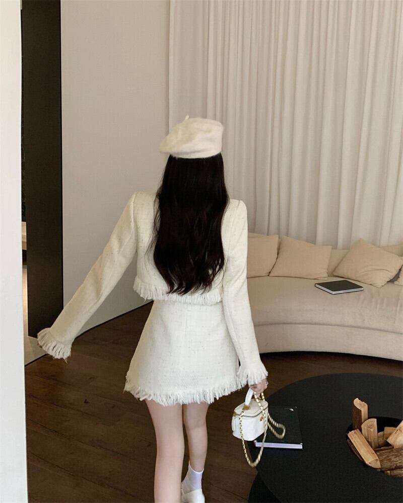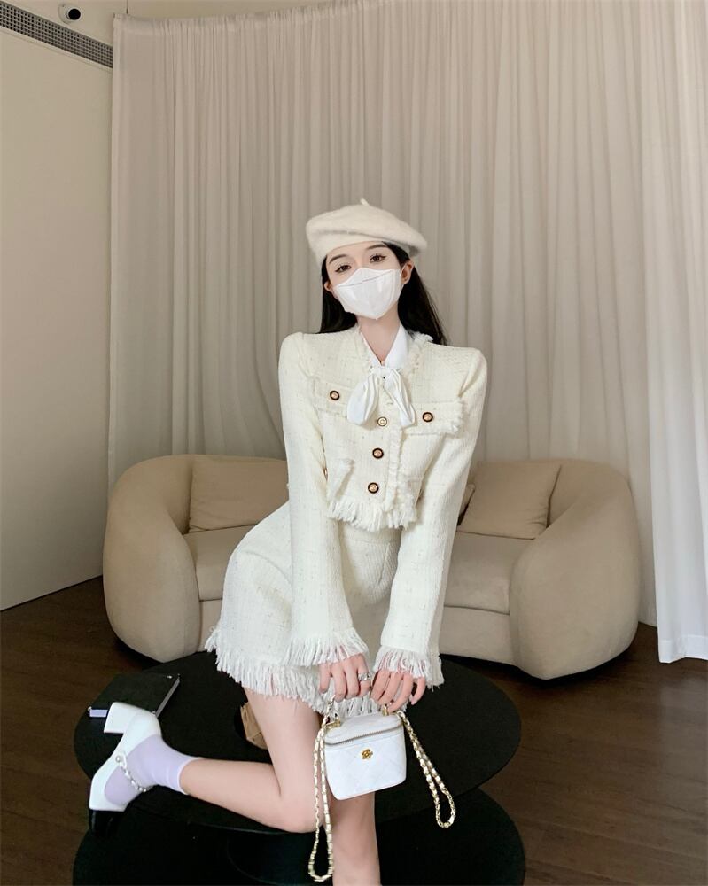セレブスーツ レディース 秋冬 秋物 シャツ 長袖 ショートコート ウエストスカート 3点セット ロング オータム ウィンター 冬物 got90264338971