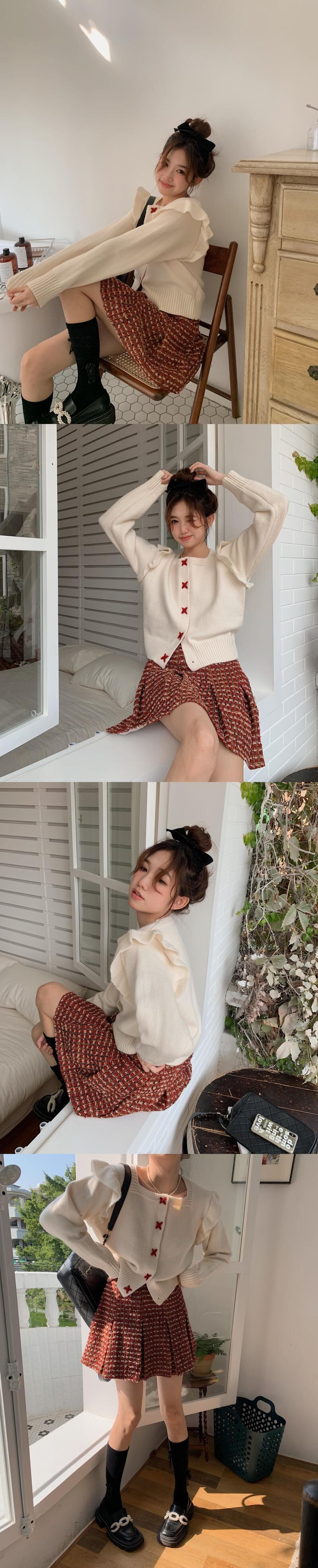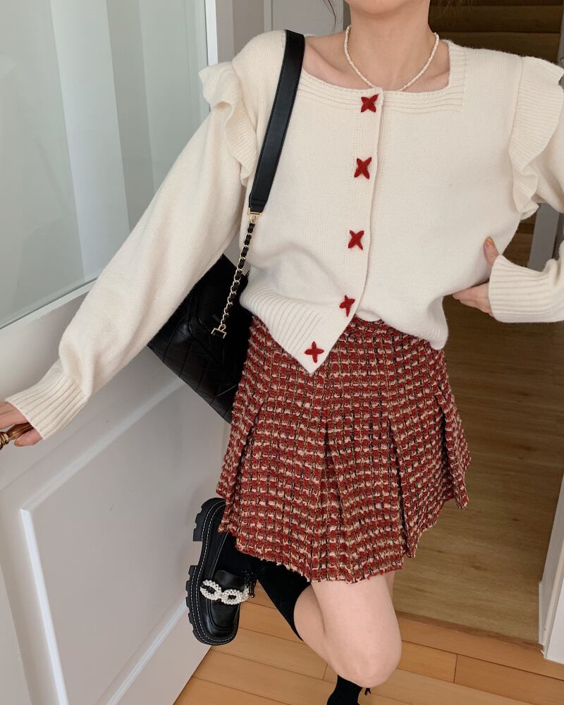 スウィートガールスーツホワイトスクエアカラーセーターショートニットトップレッドウエストスカートツーピースセット服 大人ガーリー キュート カジュアル スクウェア got42233958772